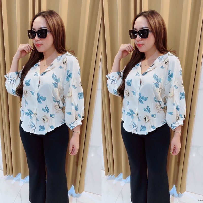 Detail Grosir Natalia | Kemeja Motif Bunga Bahan Viscose