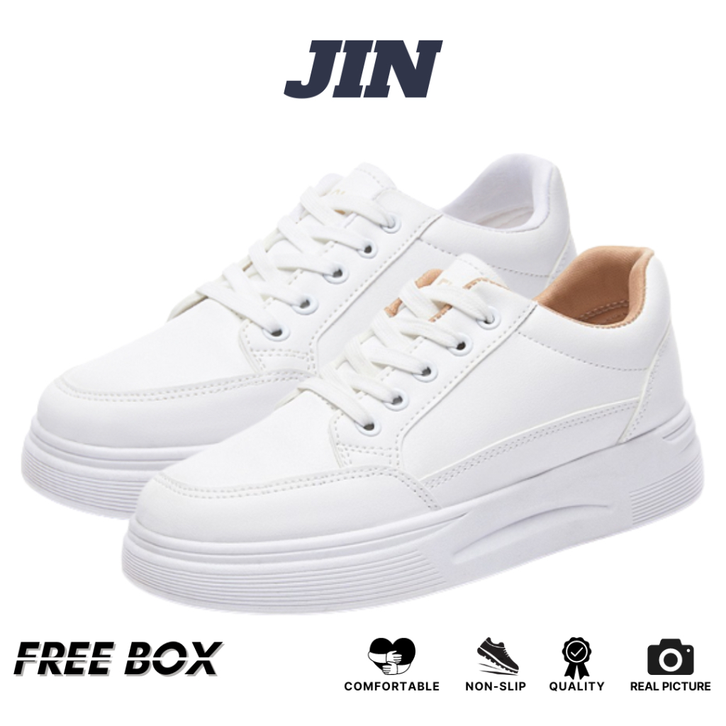Detail GROSIRTAS "FREE BOX" LV0242 Sepatu Sneakers Wanita Putih Casual Polos Import PU