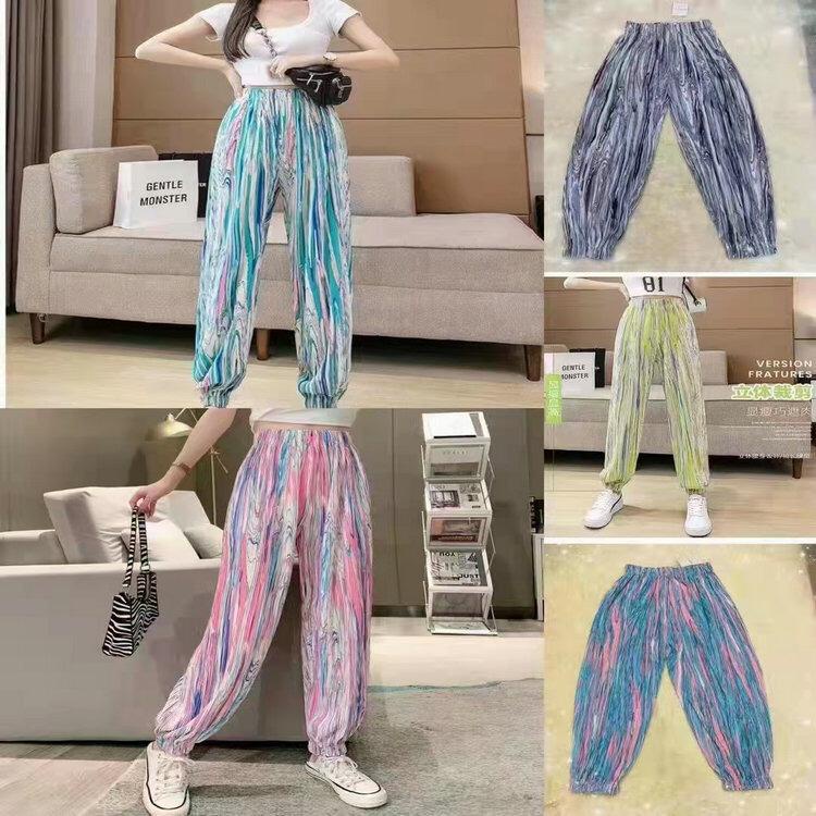 Pakaian Wanita > Celana Panjang & Legging > Celana Panjang & Legging Lainnya > GROSIRTAS TG1707 Celana Panjang Plisket Rainbow Abstrak Import Celana Jogger Dan Celana Kulot Straight Kekinian