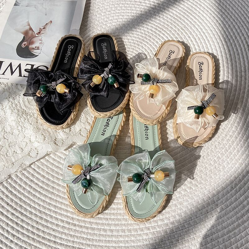 Detail GROSIRTAS TG1724 Sandal Flat Wanita Import / Sandal Flipflop Pita Bunga Candy
