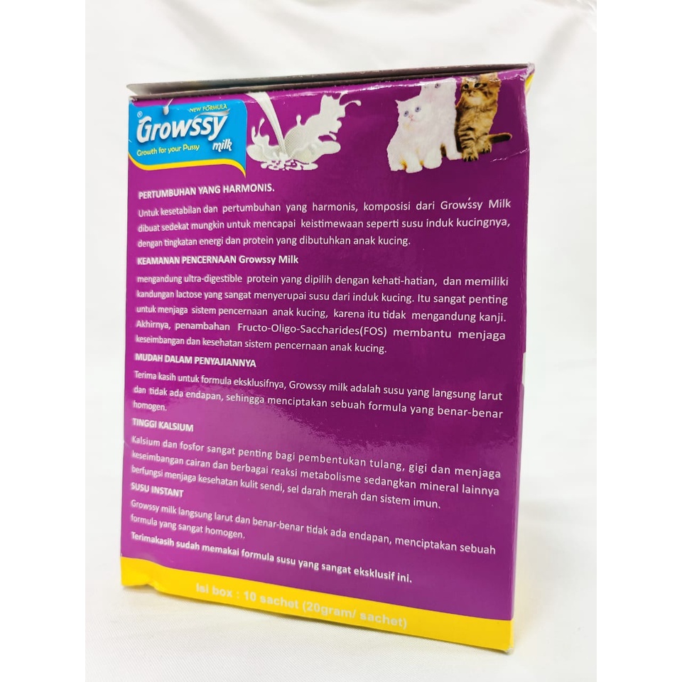 GROWSY & MAXKITT adalah susu khusus kucing yang tidak mengandung laktosa, produk ini bisa diberikan untuk kucing kampung, kucing anggora, musang, otter, dan hewan mamalia lainnya. Bahkan, susu ini bisa anda berikan pada kucing baru lahir hingga kucing dewasa.