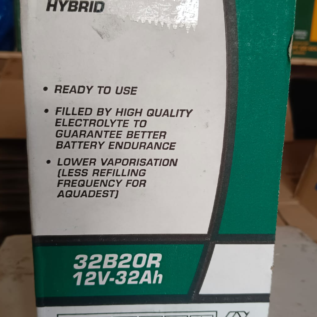 GSHY-NS40 Keunggulan GS ASTRA Hybrid: 1. Minim perawatan 2. Hybrid Technology: sehingga penguapan air aki lebih rendah dan penambahan air aki lebih lama 4 sampai 5 kali dibandingkan aki konvensional. 3. Siap pakai aki sudah terisi accu zuur standar pabrik dan sudah terisi setrum, siap langsung dipakai. 4. Terdapat Indikator elektrolit , untuk mengetahui kondisi permukaan, isi air aki dan daya setrum aki. 5. GS ASTRA Menjadi pilihan utama oleh hampir seluruh produsen kendaraan bermotor di Indonesia (OEM Quality).