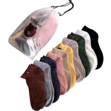 Detail (GS) Isi 10 Pasang Kaos Kaki FREE POUCH AB51 / Kaos Kaki Murah / Kaos Kaki Motif Bear