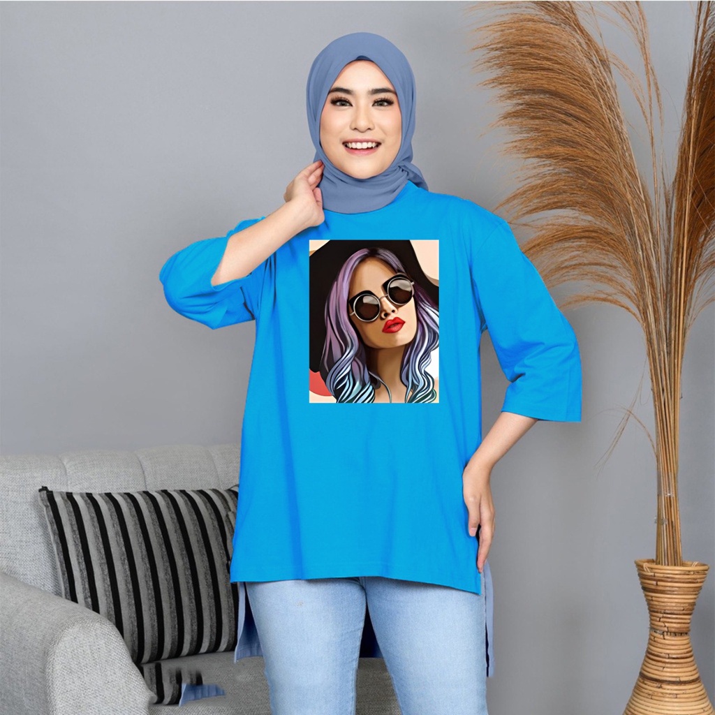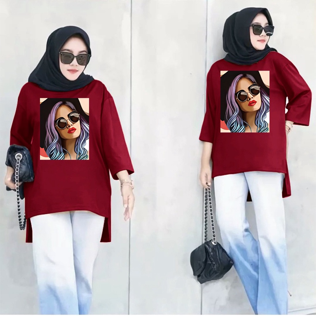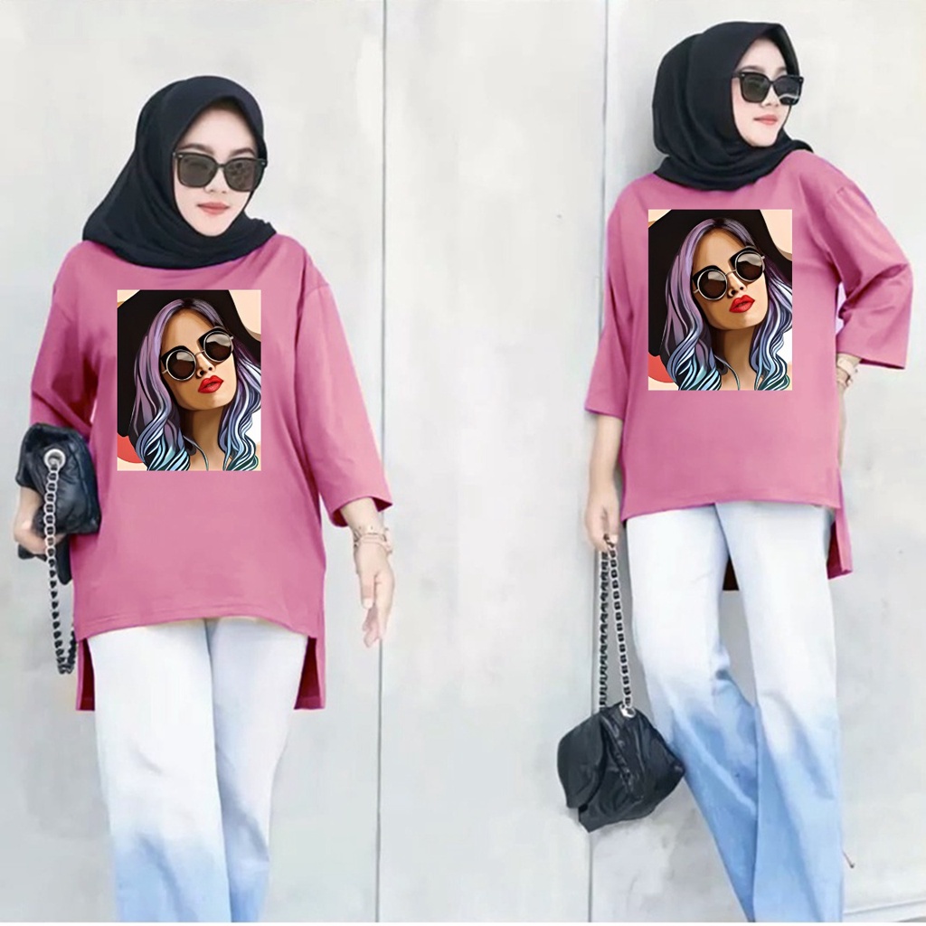 Detail GSC - Long Tunik Wanita Hijab's Motif ANIME 022 / Tunik kaos jumbo / Tunik wanita virall