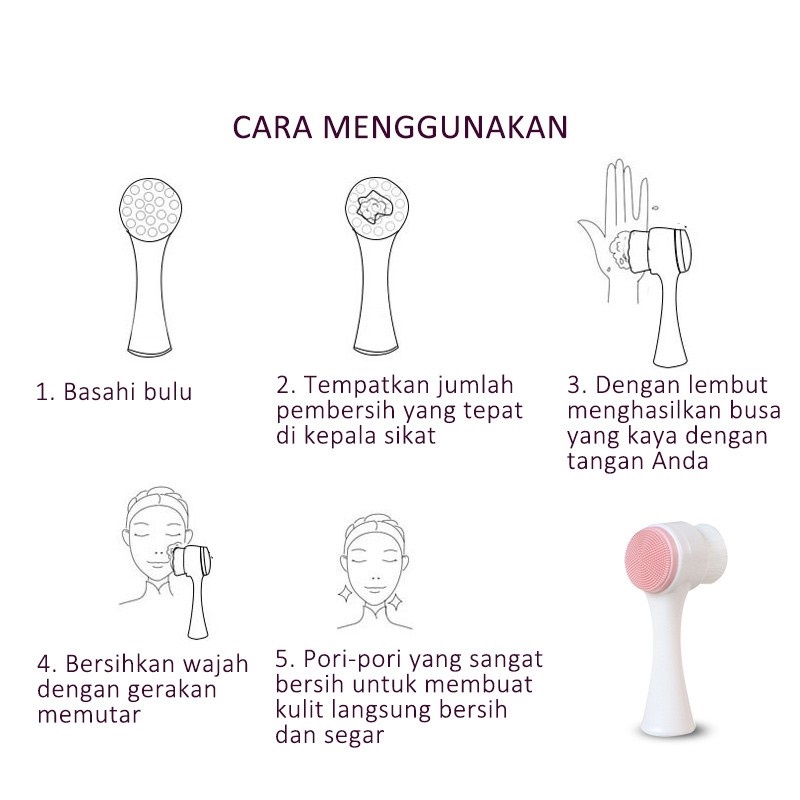 Pencuci Muka Silikon Brush 2 sisi dengan 2 fungsi: Kegunaan: 1. Sisi kuas untuk mencuci muka secara bersih dan merata 2. Sisi silikon digunakan untuk membersihkan pori-pori wajah