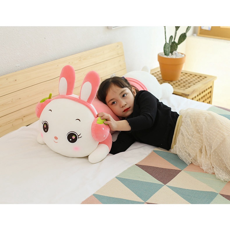 Guling Boneka Bunny Pakai Bando Strawberry Bahan Plush