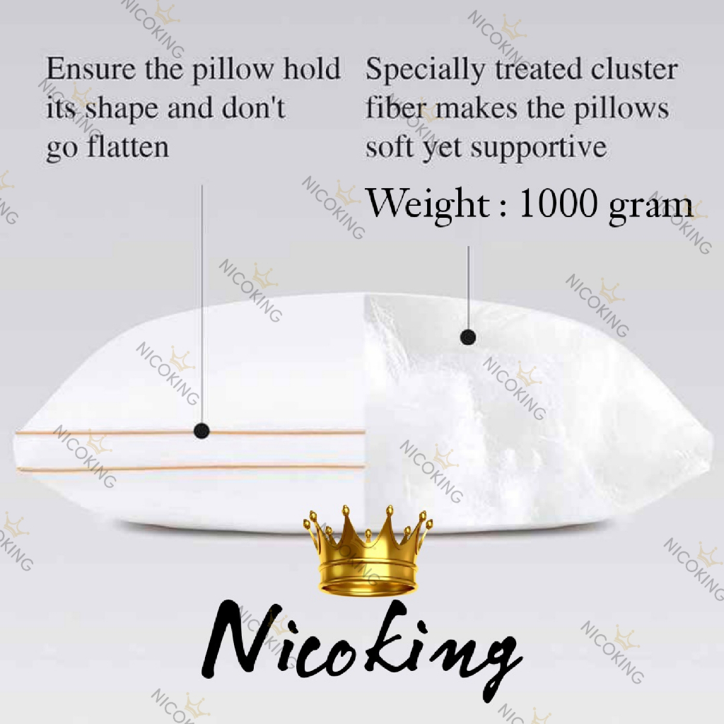 Bantal dan guling harus wajib menggunakan 2 lapisan bahan (Katun dan Interlining), agar isi di dalam bantal tidak keluar karena dapat membahayakan pengguna kalau terhirup, dan hanya bantal kami yang menggunakan 2 lapisan yaitu interlining dan kain katun, jadi sangat aman untuk digunakan untuk semua kalangan umur termasuk bayi. Bantal merk lain hanya menggunakan 1 lapisan. Ukuran : Gilsha Queen Bantal ±47x70 , Berat ±820 Gram Guling ±31x81 , Berat ±900 Gram Nicoking (1 LIST) Bantal ±45x67 , Berat ±810 Gram Guling ±30x80 , Berat ±900 Gram Nicoking Mewah (2 LIST) Bantal ±48x70 , Berat ±1000 Gram Guling ±32x82 , Berat ±1000 Gram