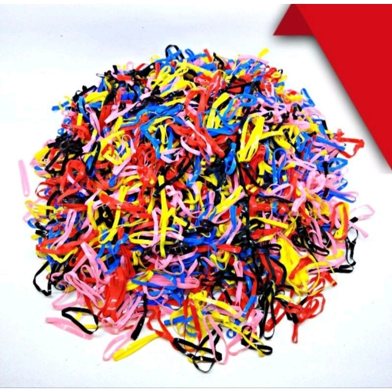 Harga yang tertera adalah harga Grosir untuk satu kemasan Satu kemas berisi :100 gram / 1 ons KARET JEPANG IKAT RAMBUT KARET GROSIR