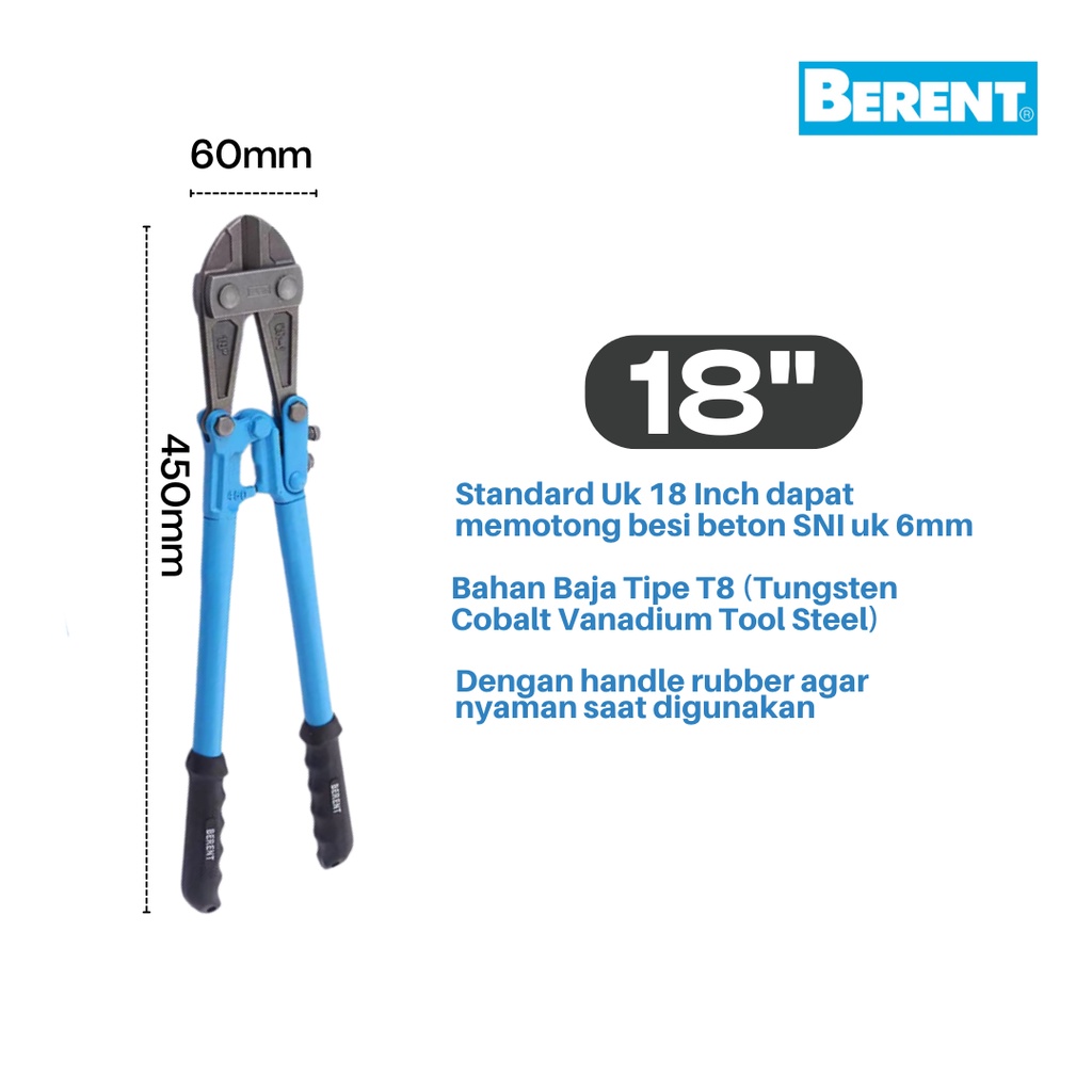 Detail Gunting Beton / Bolt Cutter "berent" Uk 18 Inch (450mm) Untuk Besi Beton / Kawat / Rantai