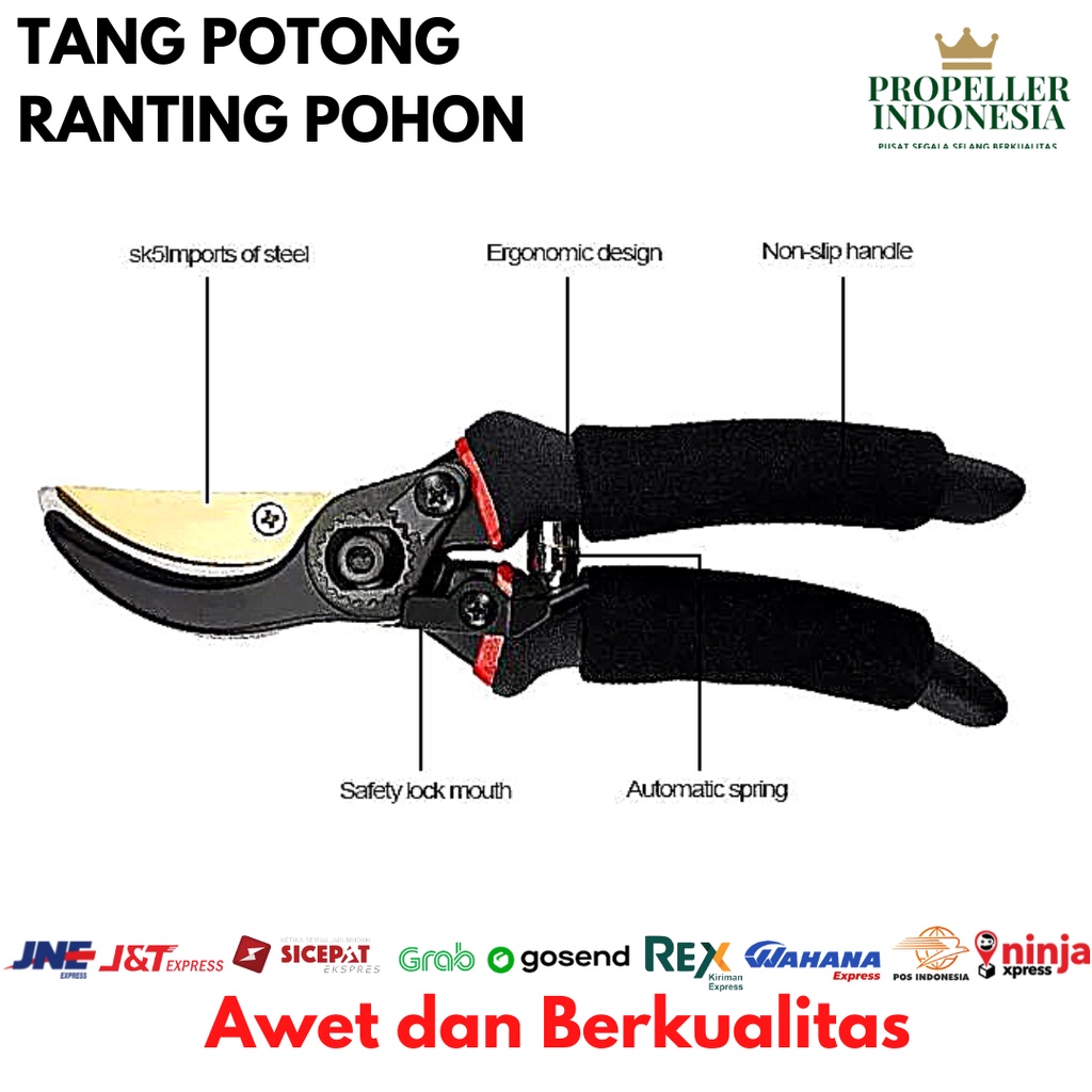 Deskripsi : -. Terbuat dari Logam Anti Karat -. Digunakan untuk menggunting tumbuhan seperti ranting pohon, ranting bunga dan lainnya -. Cocok digunakan untuk menjaga tumbuhan ditaman Anda akan rapi dan tidak merambat kemana-mana. -. Mata pisau dari gunting ini terbuat dari besi yang sangat tajam dan keras sehingga dapat menggunakan tumbuhan dengan mudah -. Terdapat juga fitur safety lock sehingga memudahkan saat digunakan