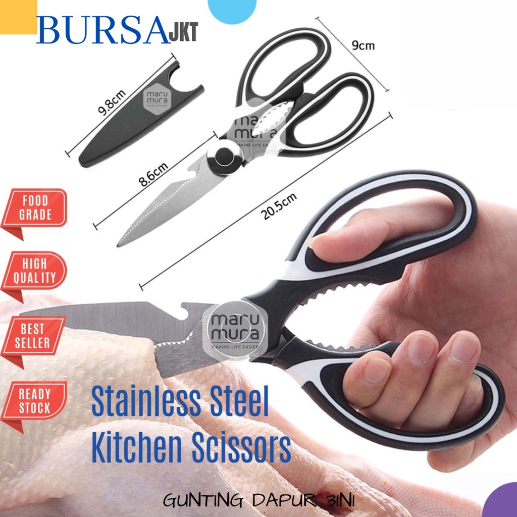 Gunting dapur tugas berat multifungsi Pisau stainless steel, Gaya potong yang kuat. Beberapa desain fungsi yang berbeda dalam produk yang sama, ideal untuk digunakan di sekitar rumah atau kantor Silahkan tanyakan dulu ketersediaan stok sebelum membeli