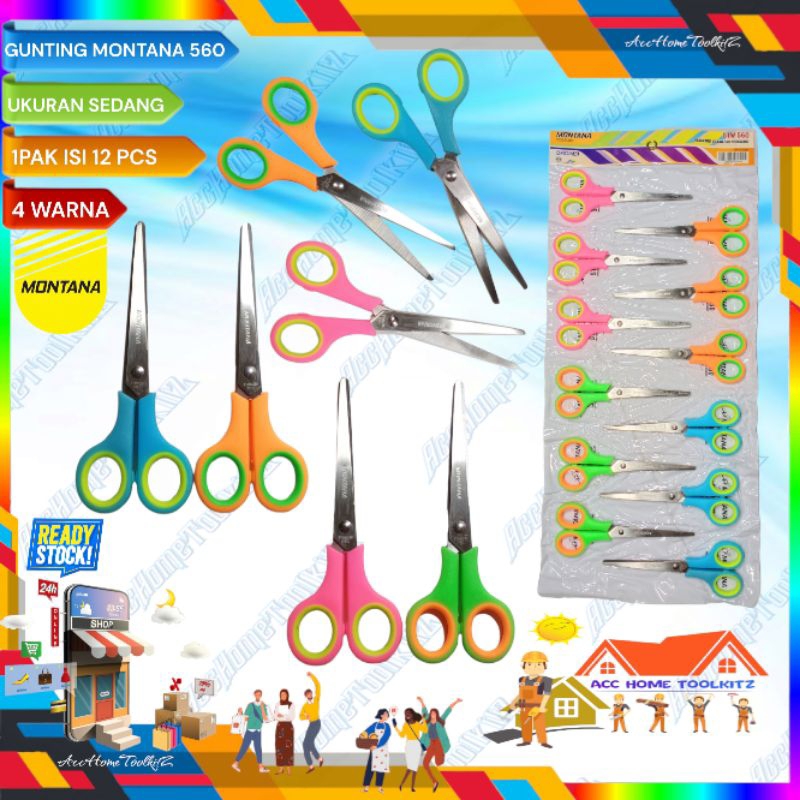 Variasi tersedia: - Gunting Warna JANSEN kecil 12cm - Gunting Warna MONTANA Tanggung 16cm - Gunting Hitam MONTANA Besar 20,5cm - - Isi 12 pcs gunting - warna hijau3 ,orange3 , biru3 ,pink3 - Merek montana - jansen - Tajam dan tidak mudah tumpul - Bahan Stainless steel high quality - Technology Japan