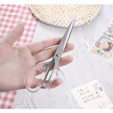 Gunting Kertas bisa digunakan untuk perlengkapan kantor, perlengkapan sekolah, bisa juga dibuat sebagai alat kerajinan tangan. Desain pegangan transparan sehingga terkesan simpel dan aesthetic. Tersedia 3 ukuran bisa disesuaikan dengan kebutuhan.