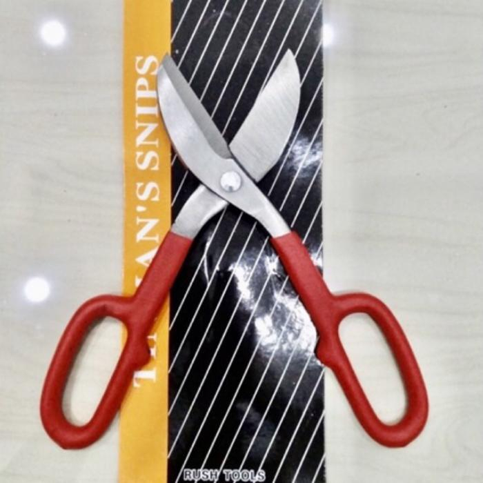 gunting untuk memotong seng / plat tipis. Gagang dilapisi karet sehingga lebih nyaman dalam pemakaian.