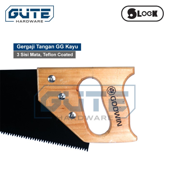 Detail GUTE GODWIN Gergaji Tangan 3 Mata Teflon Coated GG Kayu Gorok Kayu