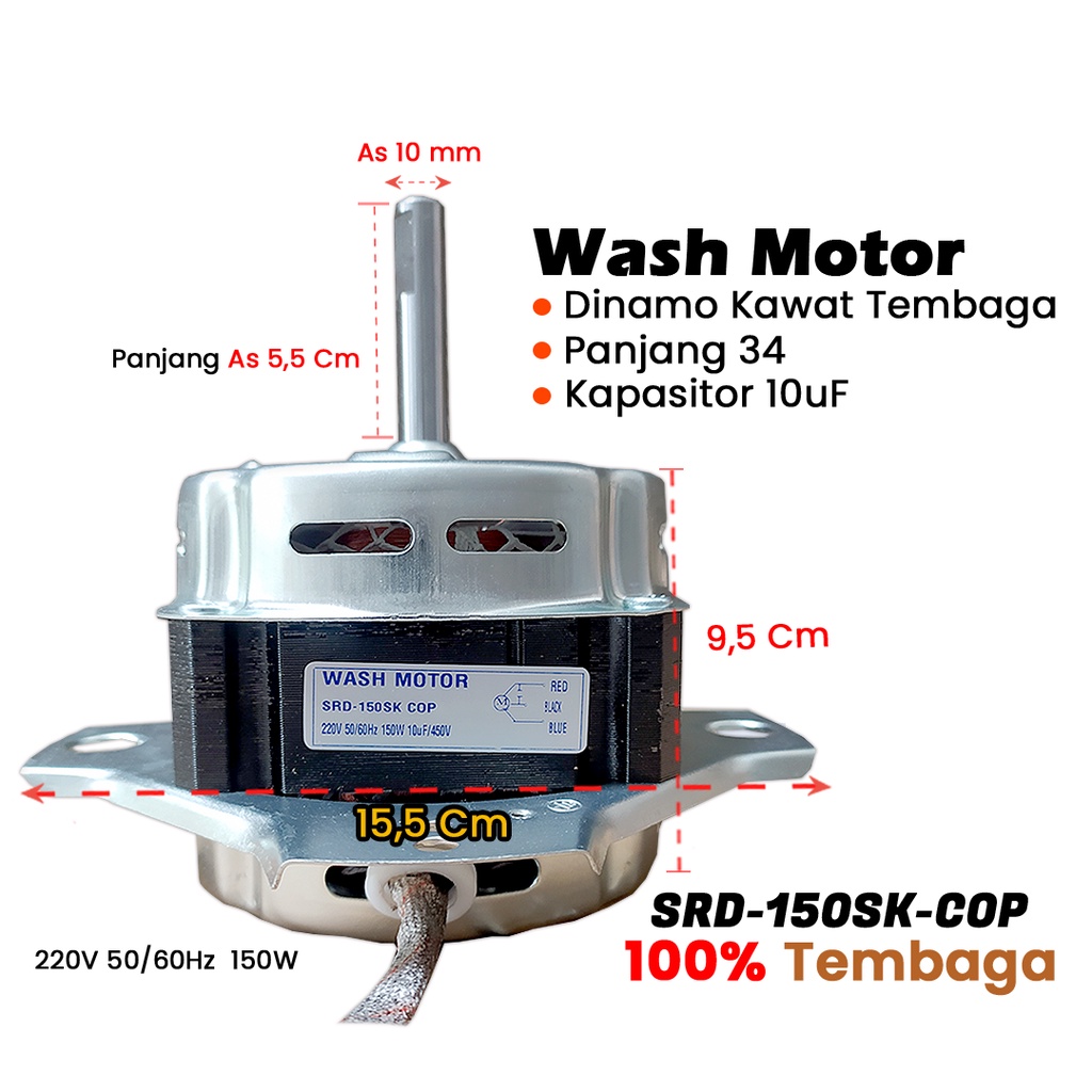 Elektronik > Mesin Cuci & Pengering > Mesin Cuci & Pengering Lainnya > (H) Dinamo Tembaga Wash Motor Mesin Cuci As 10mm Merk Sanken SRD 150SK COP Cocok untuk Merk Mesin Cuci Lainnya
