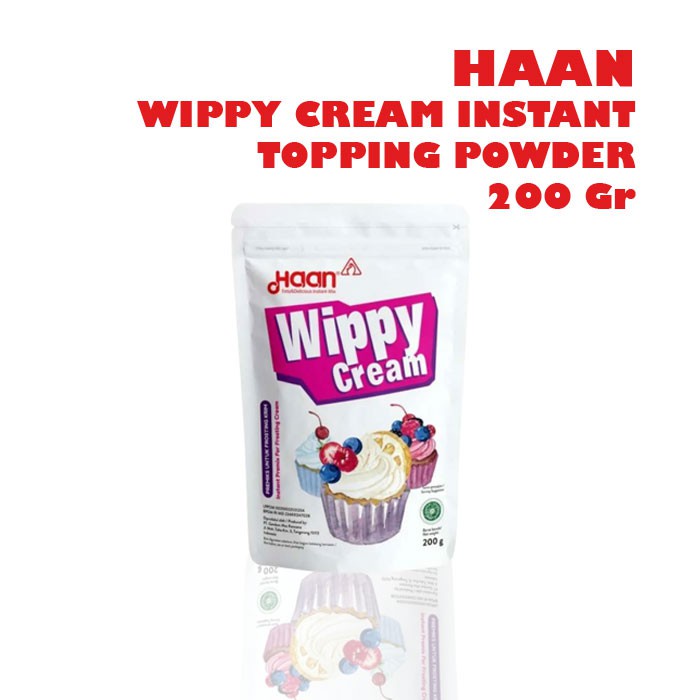 Para pencinta dessert pasti sudah tidak asing dengan yang namanya whipped cream. Selain sebagai dekorasi kue, whipped cream juga sering dipakai untuk menghiasi frappuccino. Whipped cream adalah krim yang terbuat dari susu dan dibuat dengan cara kocok dengan kecepatan tinggi sampai mengembang. Untuk mendapatkan whipped cream yang mengembang sempurna biasanya dibutuhkan alat seperti mixer, whisk, atau garpu. Whipped cream dijual dalam berbagai pilihan bentuk, mulai dari bubuk, cair, hingga aerosol. Setiap bentuknya memiliki kelebihannya tersendiri. Salah satu whipped cream dengan rasa yang lezat adalah Haan Wippy Cream. Produk ini topping bubuk yang mudah di gunakan untuk membuat wipping cream.Haan Wippy Cream diformulasikan khusus sebagai aplikasi untuk topping dan beragam jenis puding, fla, ice cream, dan lainnya.
