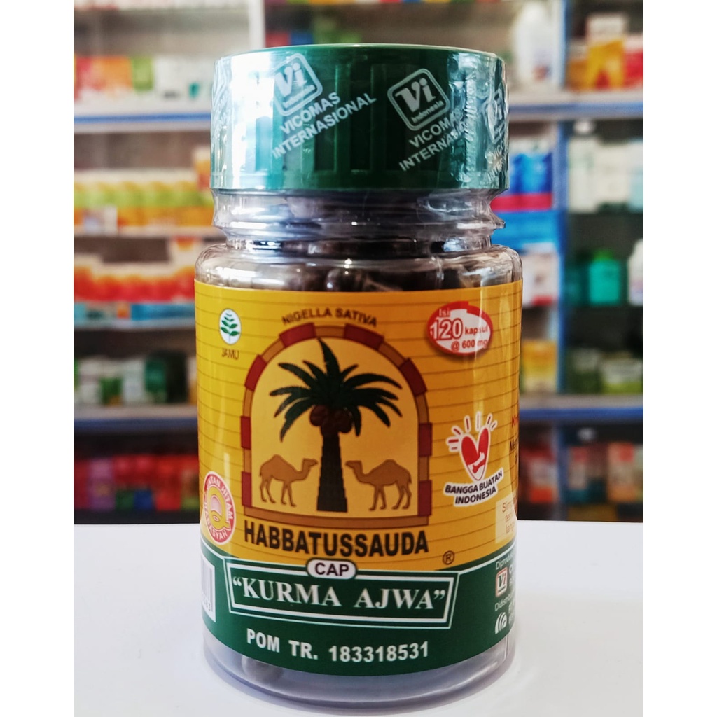 Deskripsi HABBATUSSAUDA KURMA AJWA 120 KAPSUL adalah obat herbal yang dapat di gunakan untuk mengatasi rematik, asam urat, peradangan tenggorokan, sendi, migrain, exim, alergi dan mengobati gangguan jantung, ginjal, liver, kencing manis, TBC, paru-paru kronis, sesak napas, asthma, insomnia, wasir, dan stroke, serta menormalkan / menstabilkan kolesterol, darah tinggi dan anemia, mengobati kanker dan membuang racun dalam tubuh meningkatkan ASI