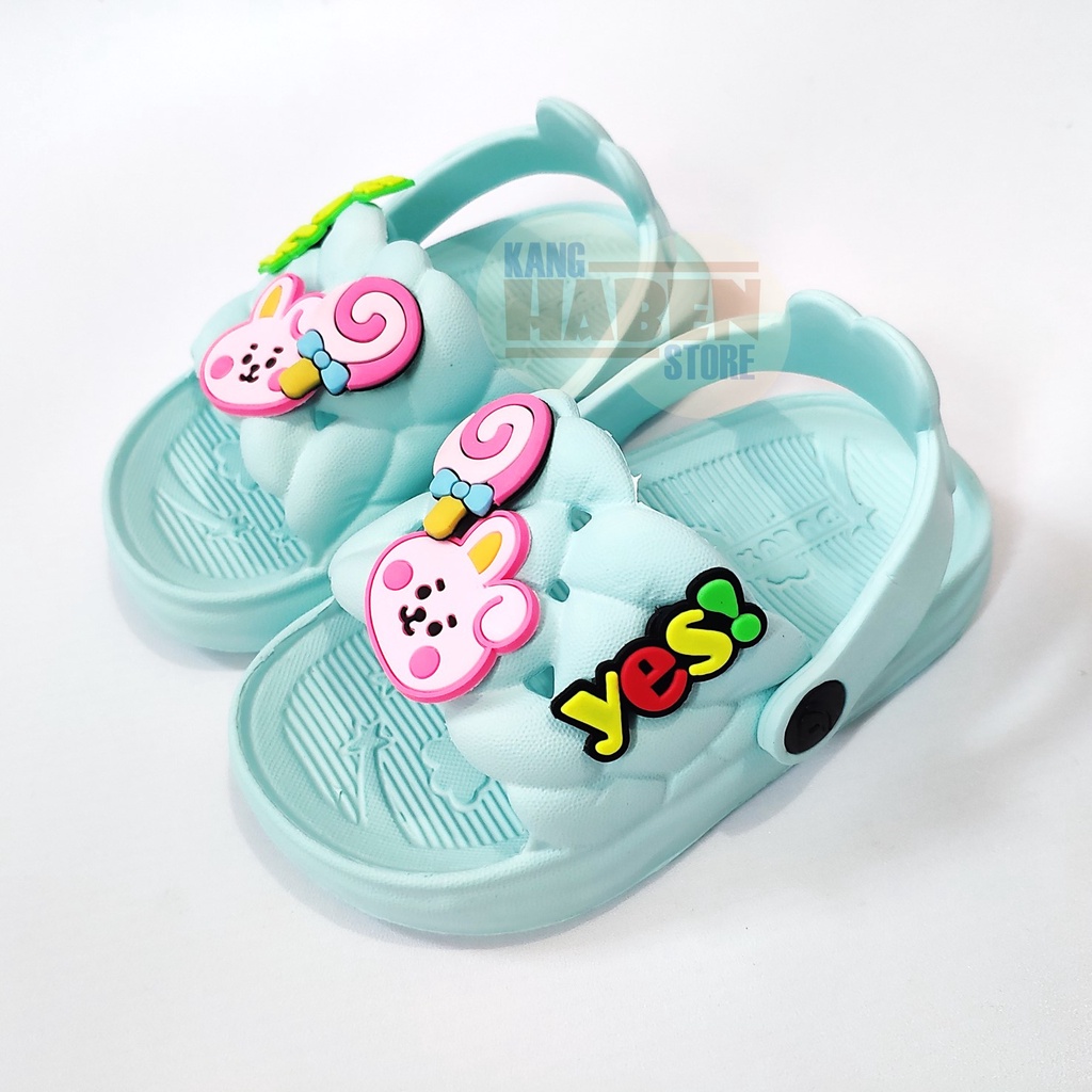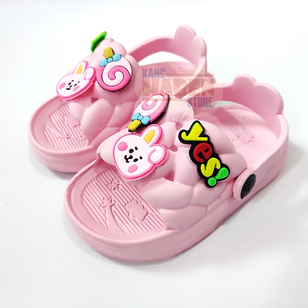 Video perkenalan produk Habenkids Sandal Kokop Anak Balita Cewek Emblem Jibbitz Lucu Kelinci Permen. Sumber: Shopee.