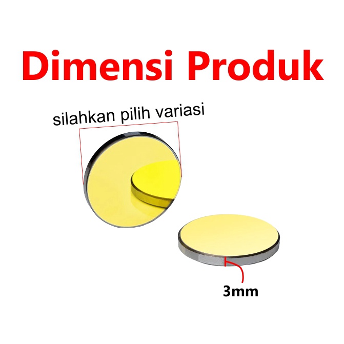 ++ Spesifikasi Produk : - Nama : Mirror Laser CO2 - Brand : Cloudray - Diameter : 20/25/30mm ( Pilih variasi ya ) - Material : Gold Coated Si - Thickness : 3mm - Wavelenght : 10.6um - Power : 60-300W(MAX) - DLL Cek foto deskripsi ya