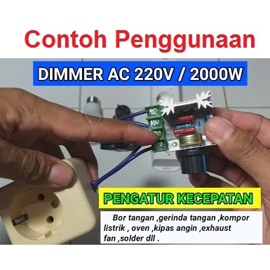 ++ Spesifikasi produk : - Nama : Motor Speed Controller - Tegangan masukan : 220V AC - Daya maksimum : 2000 W - DLL. Cek foto deskripsi ya ;)