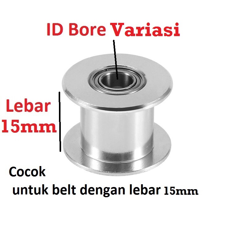 ++ Spesifikasi produk : - Nama : GT2 Idler Pulley - Ukuran : 20T, tanpa gigi ya - Diameter dalam : 3/4/5/6/8mm (pilih sesuai variasi tersedia ya ;) - Lebar belt : 15mm - Bahan : Aluminium dan bearing - DLL. Cek foto deskripsi ya ;)
