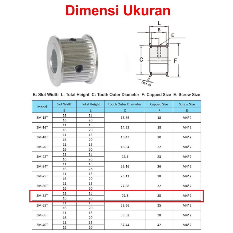 ++ Produk Cocok Digunakan Untuk : - Belt HTD3M Timing mesin CNC - Mekanik Aktuator Pulley - Mekanik gear berbanding pulley - DLL.