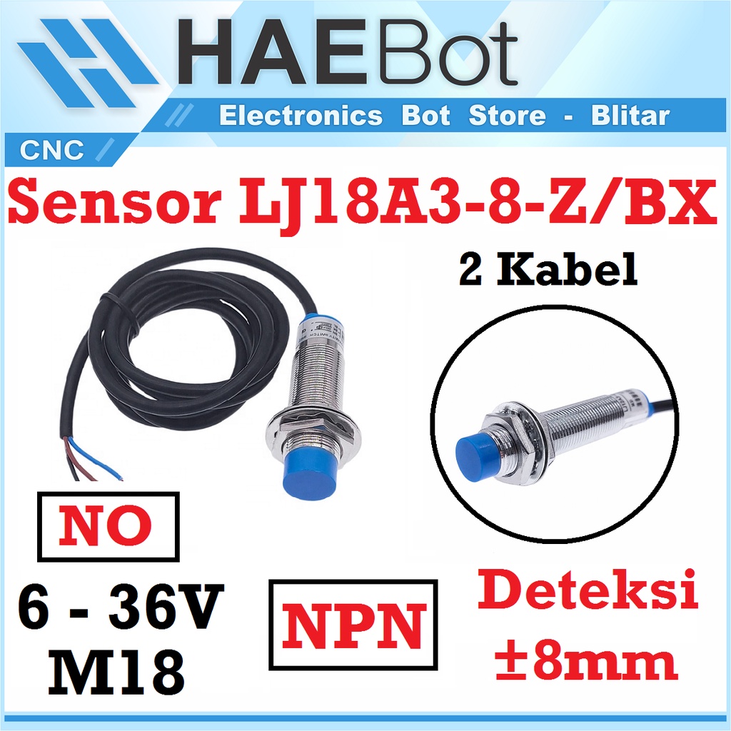 [HAEBOT] Inductive Proximity Sensor Induktif NPN NO 8mm LJ18A3-8-Z/BX 6-36V DC LJ18A3 8 Z BX Metal Detector Normally Open Limit Pendeteksi Logam 18mm M18