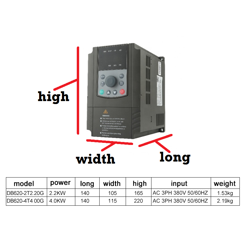 ++ Spesifikasi produk : - Nama : Inverter Rituo - Model : DB620 - Daya : 2.2KW/4.0Kw (pilih variasi yang ada ya;) - Ukuran : 140 x 105 x 165 mm - Tegangan Input : 3PH 380V 50/60Hz - Tegangan Output : 3PH 380V 0-650Hz - Berat : 1.5-2.3 Kg - DLL. Cek foto deskripsi ya ;)