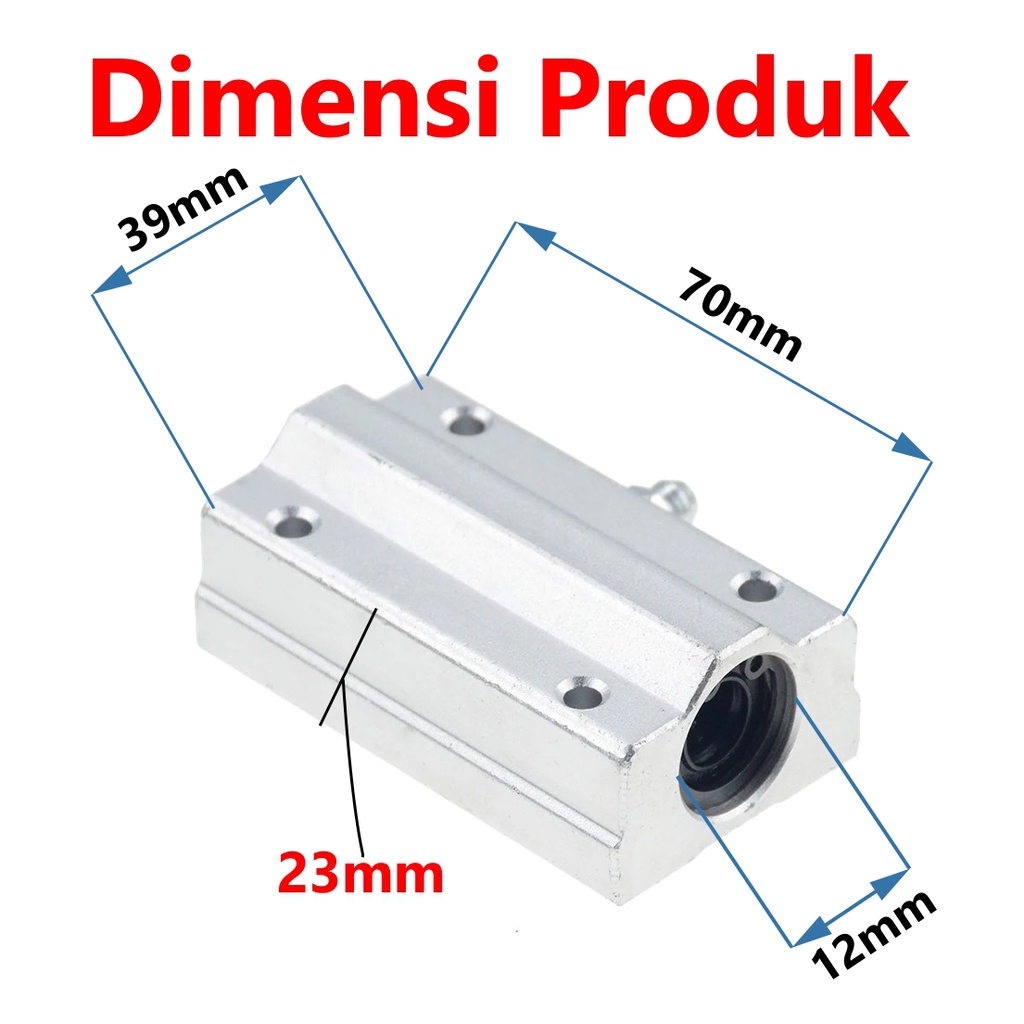 ++ Spesifikasi produk : - Nama : Bearing Block SCS12LUU - Diameter dalam : 12mm - Ukuran Baut : M5 - Bahan : Aluminium Alloy - DLL Cek foto deskripsi ya :)