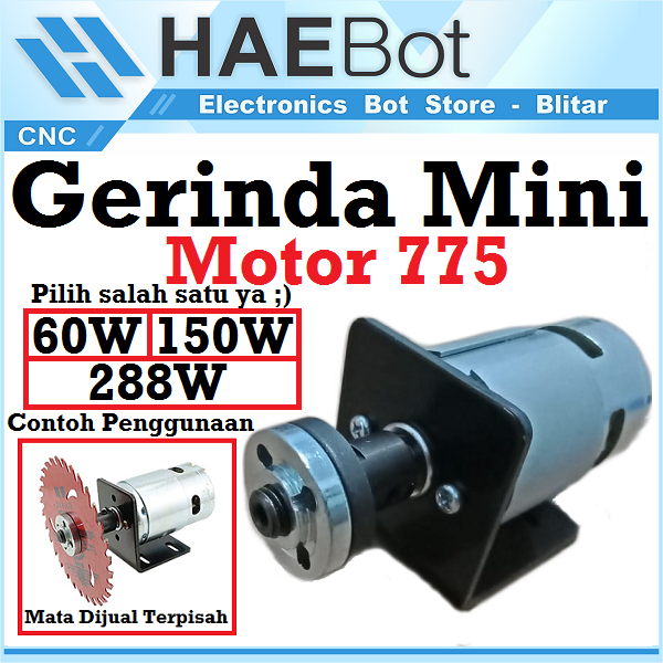 ++ Spesifikasi produk : - Nama : Gerinda mini Motor 775 - Merek : Hanpose (untuk 150 & 220W) - Diameter As shaft : 5mm - Tegangan kerja : 12-24V (150W tidak bisa pada 24V) - Daya : 60/150/288 Watt (silahkan dipilih ya ) - DLL. Cek foto deskripsi ya ;)