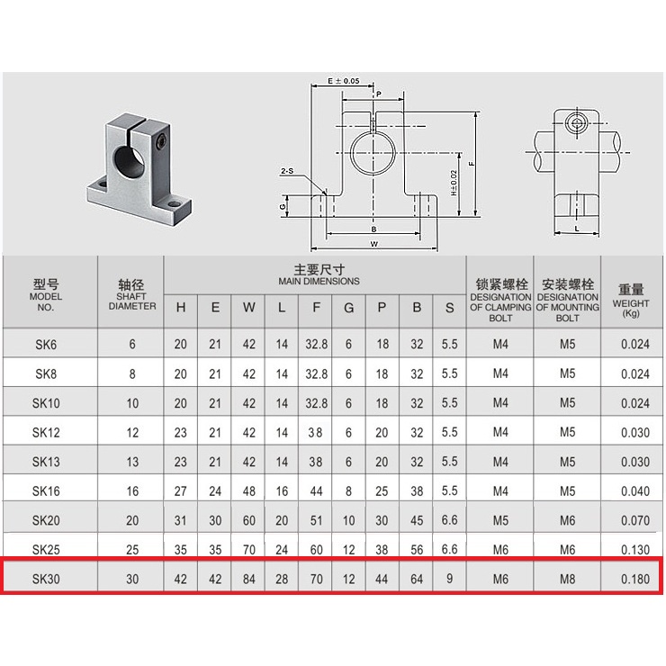 ++ Spesifikasi Produk : - Nama : Shaft holder SK30 - Diameter dalam : 30mm - Diameter baut penguat : 8mm - Posisi : Horizontal / Vertikal - Bahan : Aluminium Alloy - DLL. Cek foto deskripsi ya :)