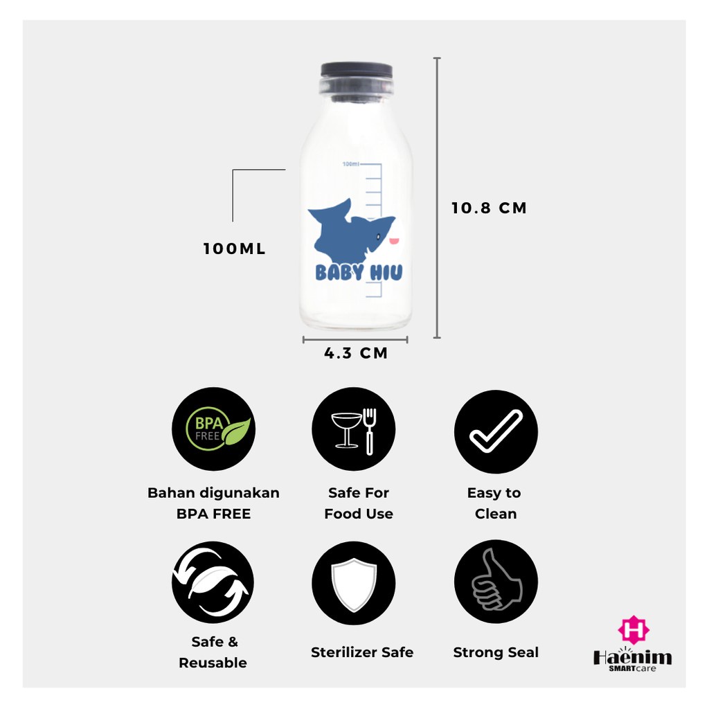 Botol Kaca ASI BabyHiu berkapasitas 100 ml dengan tutup botol berkualitas , dan sangat vacum