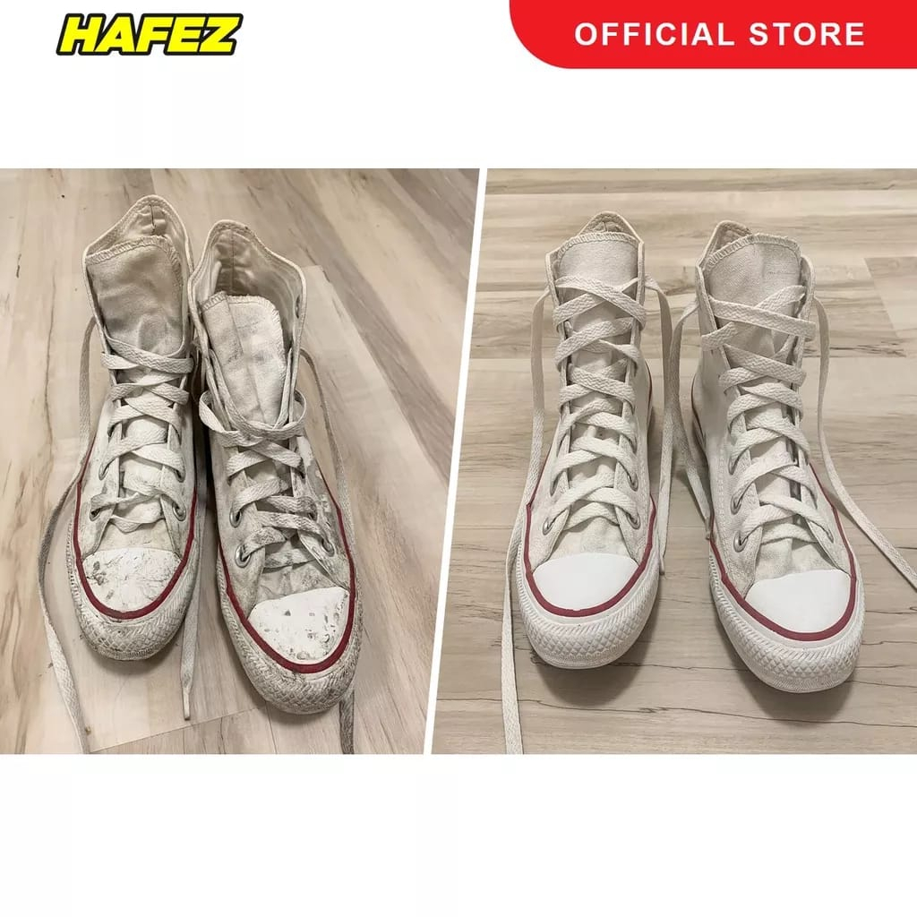 Hafez Shoe Foam Cleaner sangat efektif juga membersihkan bagian dalam sepatu sehingga bebas dari kuman, bakteri, & bau apek.