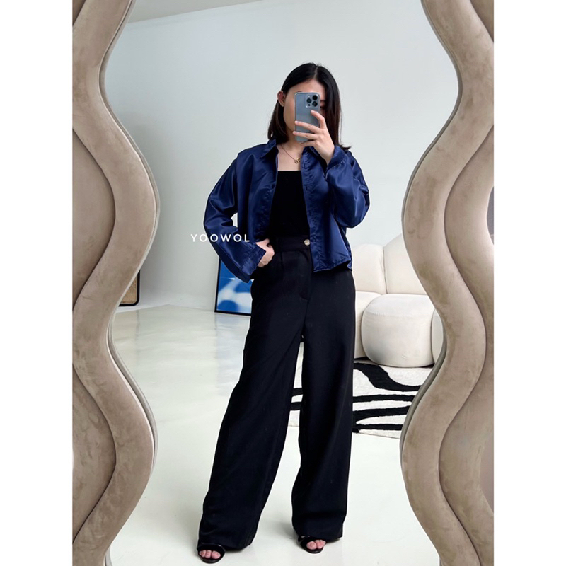 Ps: - material satin, bahan lembut dan tidak kasar - cocok untuk BB 40-60kg - cocok untuk TB 150-170cm - bisa dijadikan kemeja crop/ outer crop - material lembut, jatuh dan nyaman - cocok untuk sehari-hari ataupun berpergian
