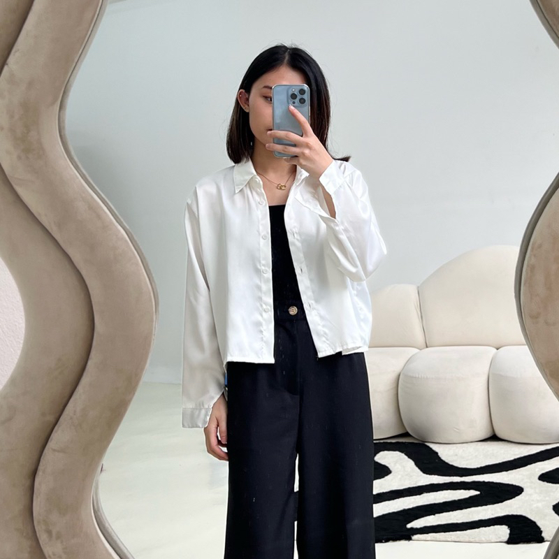 Detail Hailey Shirt/Kemeja Crop Satin Lengan Panjang