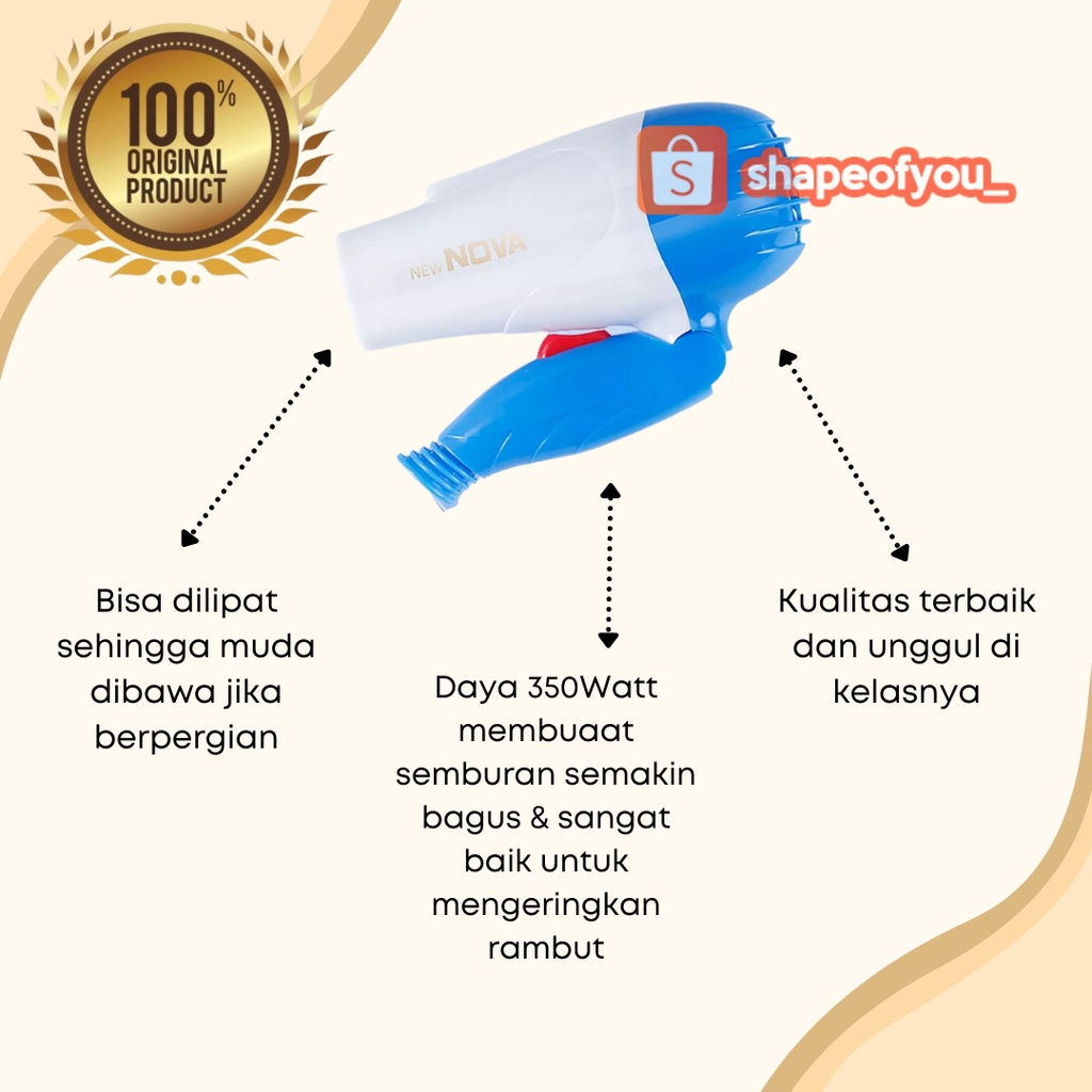 Perawatan & Kecantikan > Alat Rambut > Hair Dryer > Hair Dryer Hairdryer Mini Lipat Low Watt pengering rambut NOVA / GMAX Ukuran Kecil Murah Praktis Ori