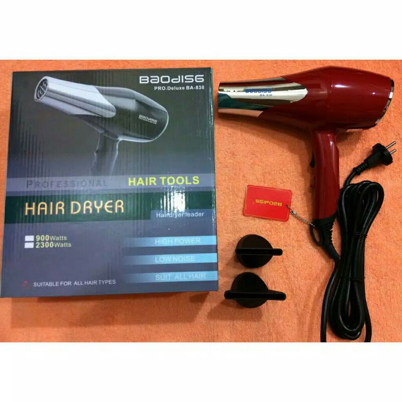 Hairdryer Baodisg 838 adalah pengering rambut profesional yang sudah dikenal beberapa tahun dengan kualitas yang tetap dan bagus, ketika menghidupkannya, akan muncul lampu biru dari dalam mesin hairdryer.