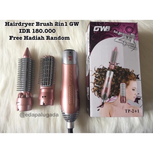 Merk GW (Profesional hairdryer) Terdapat 2 buah bentuk sisir blow yang bisa di ganti sesuai dengan keinginan pemakai. Menyatunya hairdryer hairdryer sekaligus sisir membuat anda tidak lagi perlu repot" memegang hairdryer sambil menyisir.