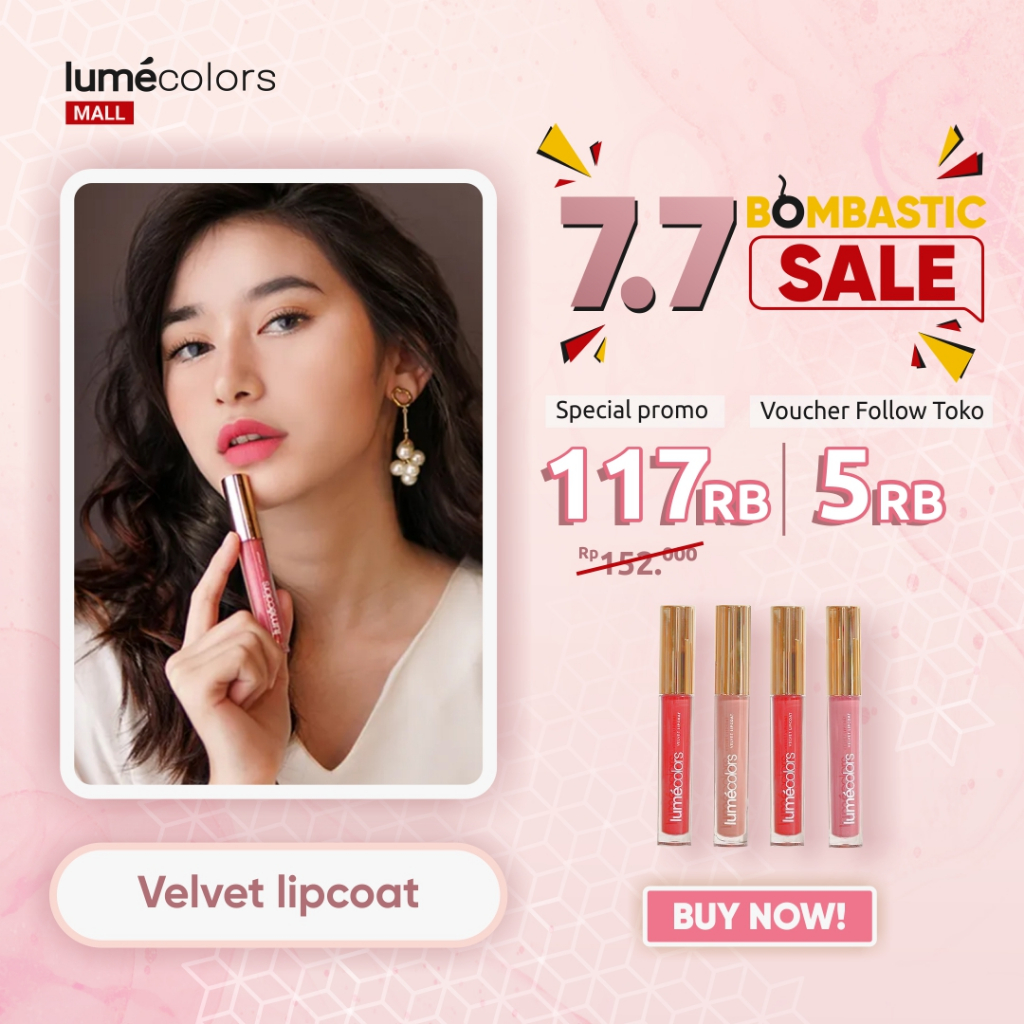 ------------------------------------ 💄 Lumécolors Velvet Lipcoat baru yang beda sama lipmatte: - Tidak akan crack/ pecah - Tidak akan menggumpal - Tidak membuat bibir kering terasa ketarik - Dijamin ringan di bibir dan tahan lama (bisa tahan 12 jam) - Kiss proof, Super PIGMENTED dan terasa velvety silky ketika dipulas di bibir dan memberikan hasil akhir Matte - Selain mengandung UV Filter, Anti Oxidant dan Moizturizer yang dapat mencerahkan bibir dan memberikan nutrisi pada bibir sehingga sangat nyaman dipakai - Pigmented --> Sekali pulas langsung "keluar" warnanya, dan mencover warna bibir gelap sekalipun - Halal, Bpom, dan aman digunakan saat Shalat, karena menyerap air wudhu - Menghaluskan tekstur garis bibir, dan memberikan tampilan bibir sehat sempurna - Pilihan warnanya yang cantik memang dikondisikan khusus untuk warna-warna kulit wanita Asia