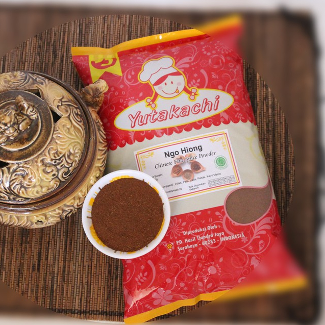 Chinese Five Spice / Ngo Hiong Yutakachi merupakan perpaduan lima bumbu yaitu adas, pala, merica putih, pekak dan kayu manis dengan komposisi yang pas sehingga menghasilkan rasa dan aroma yang kuat. Chinese Five Spice / Ngo Hiong Yutakachi sangat praktis untuk digunakan sebagai bumbu pada masakan/makanan atau dicampurkan pada bumbu kentucky/fried chicken untuk memberikan yang khas.