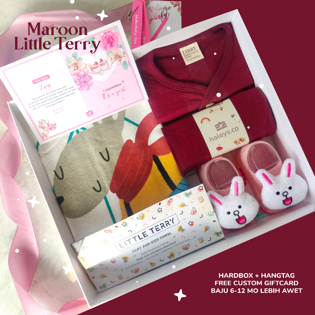 Detail Haleys.co | Baby Hampers Ruby Little Terry Paket Kado Baby Girl 0-12 month | Kado Lahiran Premium | Baby Gift Box | Kado Bayi | Hampers Baby Girl | Hampers Bayi Perempuan VARIAN LIBBY MAROON RUBY + TOWEL LITTLE TERRY ALPACA Pemberian yang terbaik untu