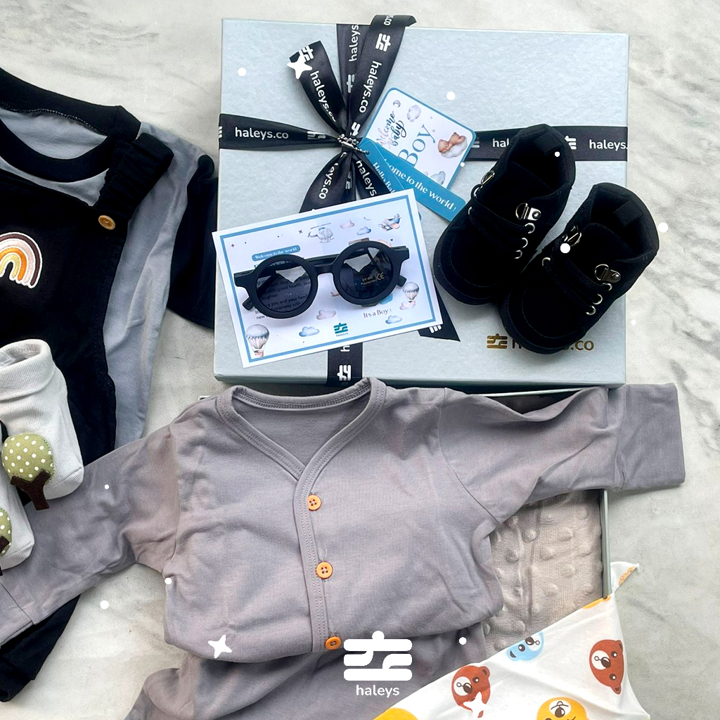 Pemberian yang terbaik untuk Si Kecil merayakan permulaan yang baru πΆπ»π Berikan kado yang terbaik untuk sahabatmu yang baru lahiran dengan paket hampers Baby Boy dari Haleys.co !