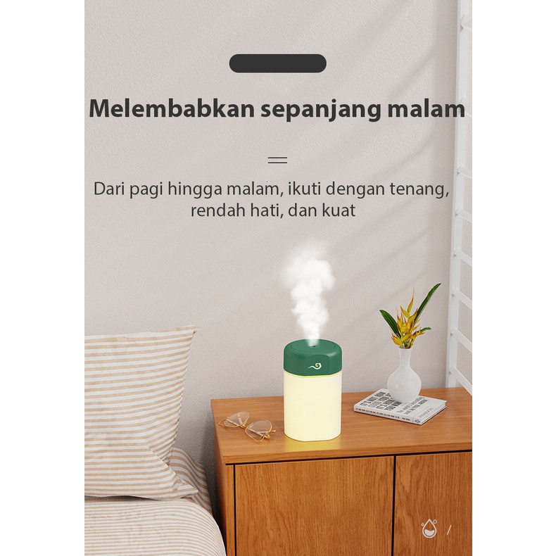 Fitur: - Cocok untuk kamar tidur, ruang makan, kamar mandi, mobil atau area lainnya. - Membantu menyegarkan udara dan melembabkan kulit. - Pelembab udara ini sangat tenang / tidak berisik selama beroperasi. - Partikel air nano menembus ke lapisan bawah kulit untuk melembabkan kulit. - Produk ini juga dapat digunakan sebagai lampu tidur dengan Lampu LED 7 warna yang dapat berubah-ubah , memberi Anda suasana yang hangat dan nyaman.
