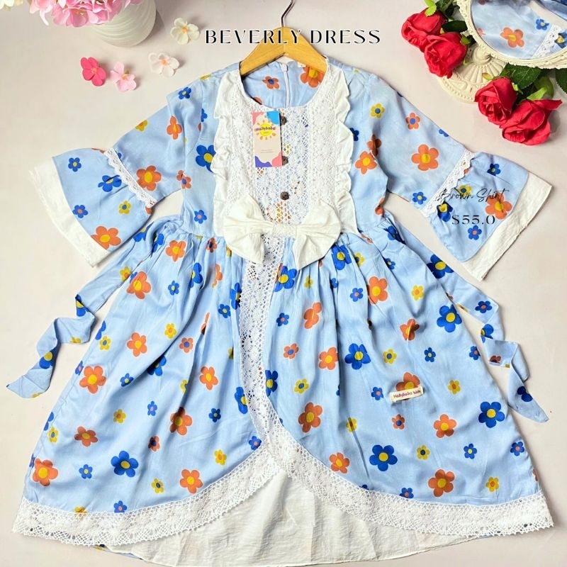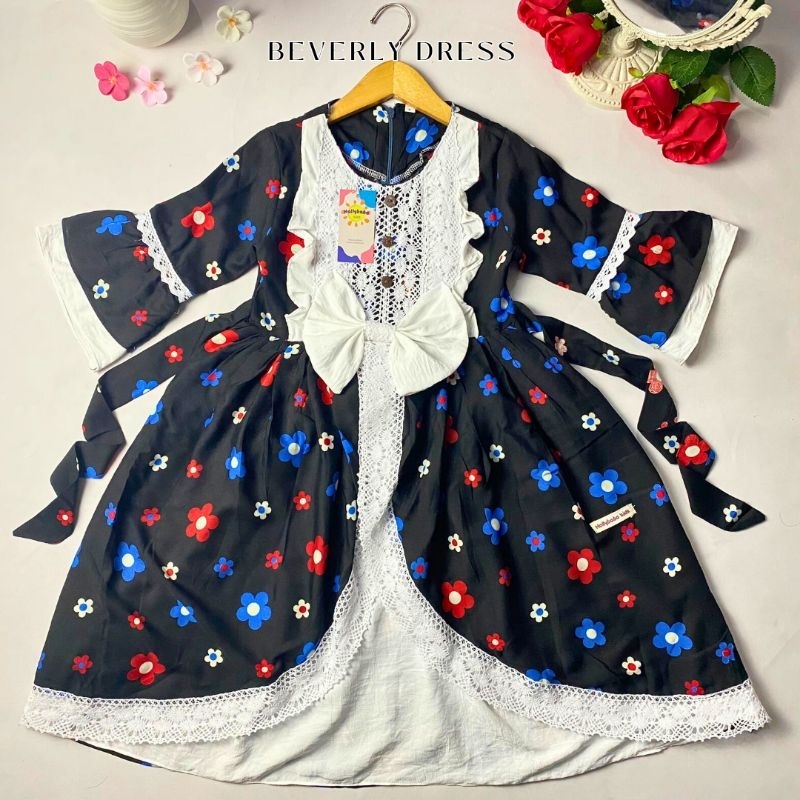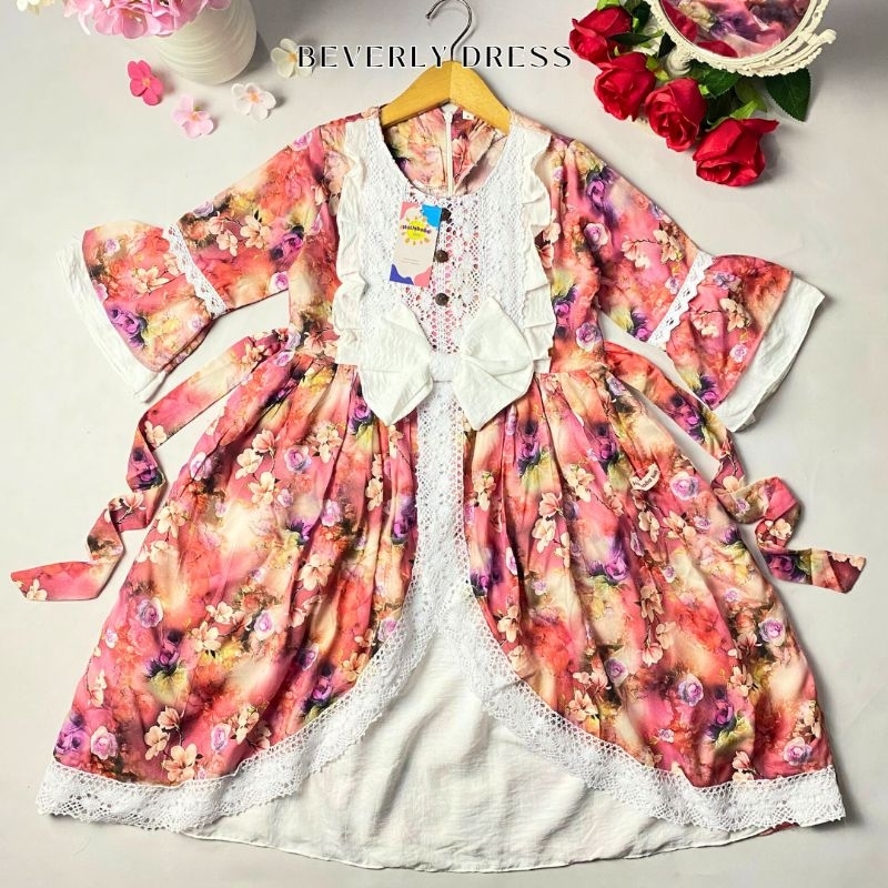 New Arrival Beverly Dress/ Gamis Available size 1-5 th Material: Rayon Premium / Sritex dengn sifat bahan adem ringan dan tebal untuk sekelas rayon menjadikan bahan ini awet meskipun dicuci dgn mesin cuci. Dikombinasikan dengan Crinkle Ceyrossa berwarna putih dengan ketebalan kain seperti rayon, ringan, dan adem sebagai layer dalam dari dress ini . Detail model Style dress ala Princess Disn3y. Rok dress 2 layer dihiasi renda rajut.. terdapat hiasan ruffle dan renda dibagian dada juga kancing batok nonaktif. Lengan model lonceng 2 layer.