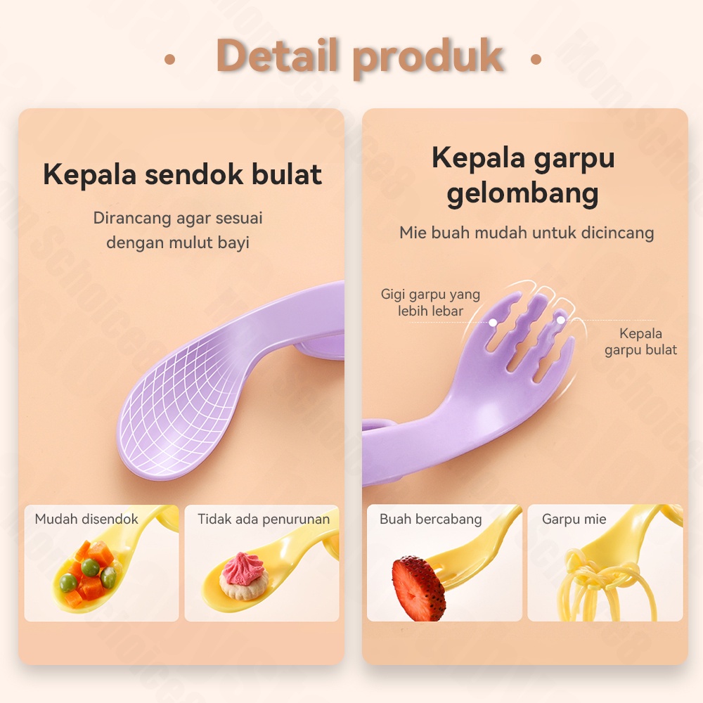 ⭐Dibuat dari Food grade PP material, dengan bentuk yang disesuaikan dengan mulut anak. Sangat cocok untuk anak yang sedang belajar makan sendiri. Didesign dengan bentuk yang menarik dan mudah digunakan untuk anak ketika memasukan makanan ke mulutnya.