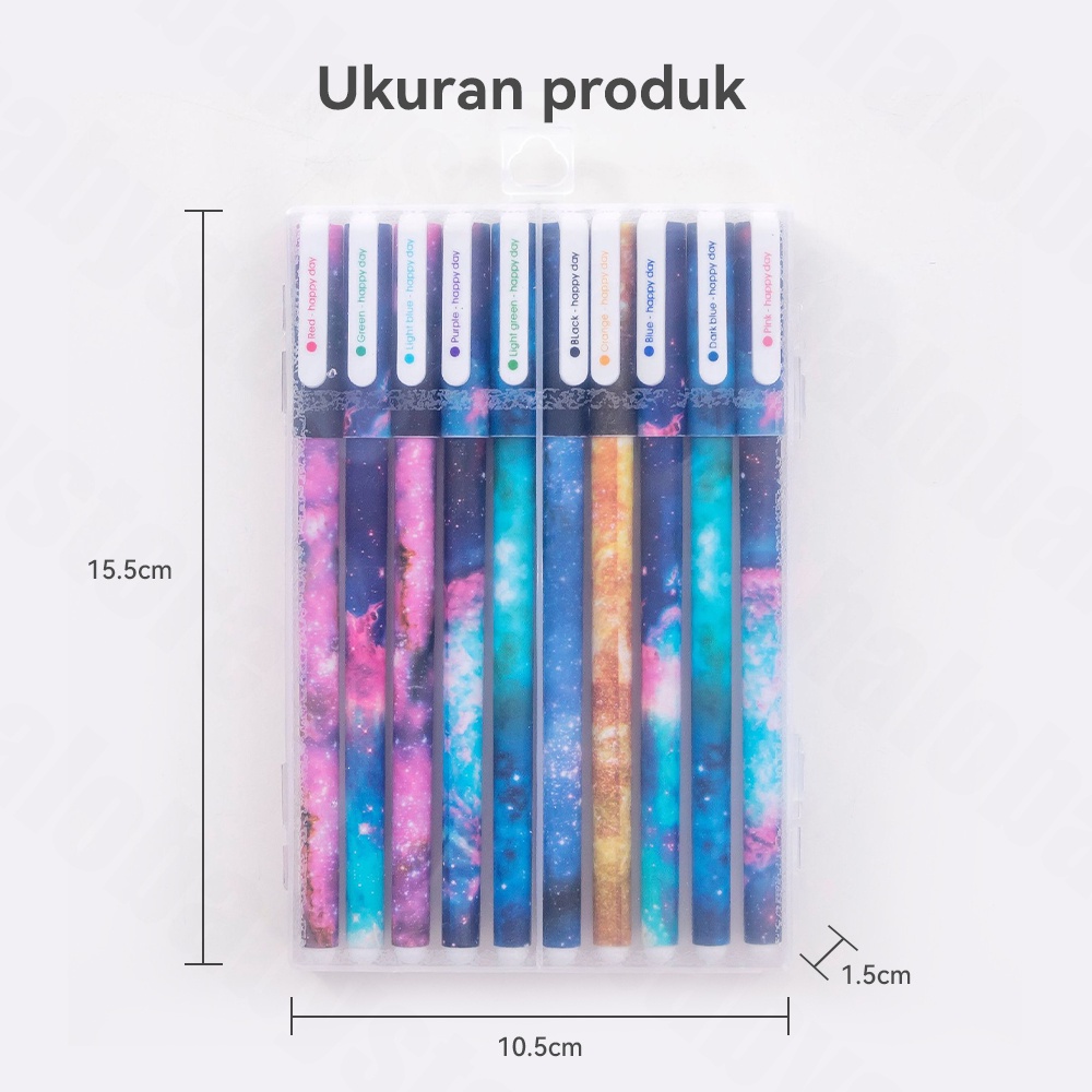 🌞Motif: 🍓StarrySky 🍓Unicorn 🍓MameGoma 🍓Panda 🍓Animal 🍓BT21 🌞Ukuran: 15.5 cm 🌞Bahan: plastik + isi ulang 🌞Ujung pena: 0.38mm 🌞Produk termasuk: 1 set/10 buah pena 🌞Pengepakan: tas OPP + kotak PVC