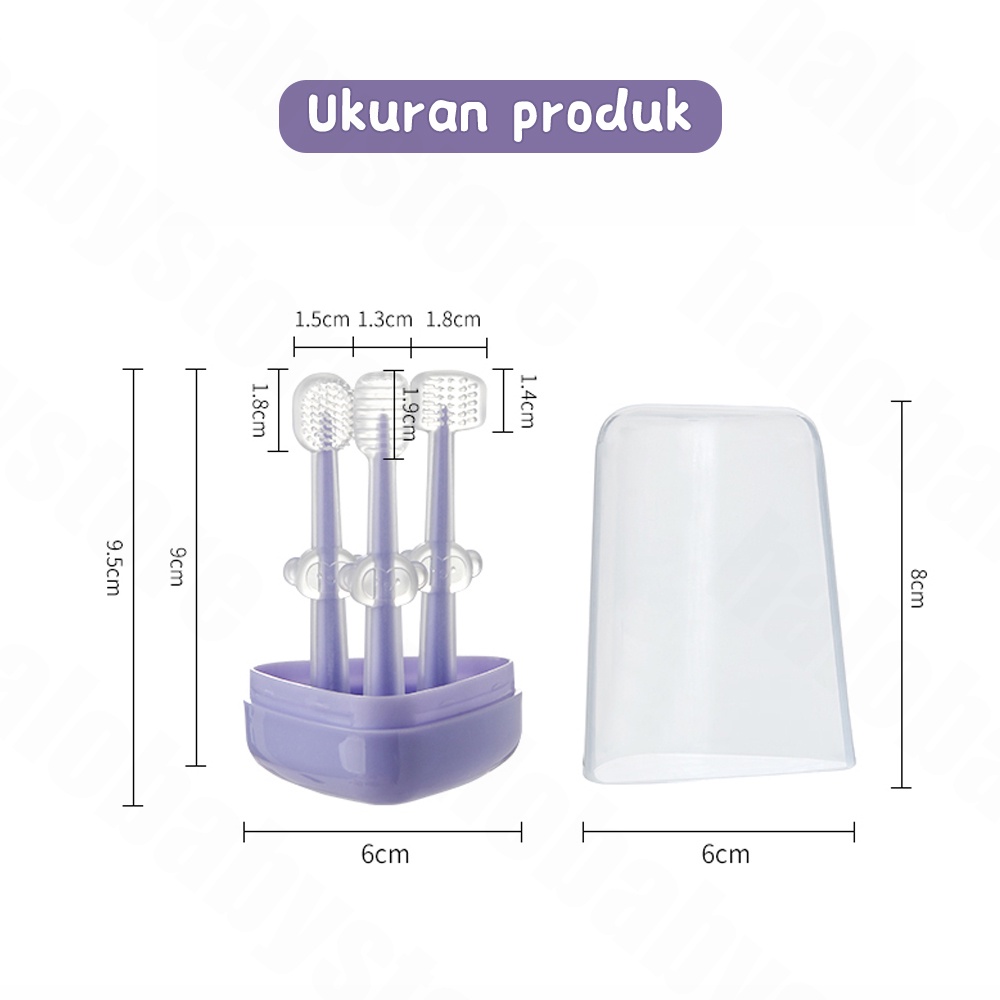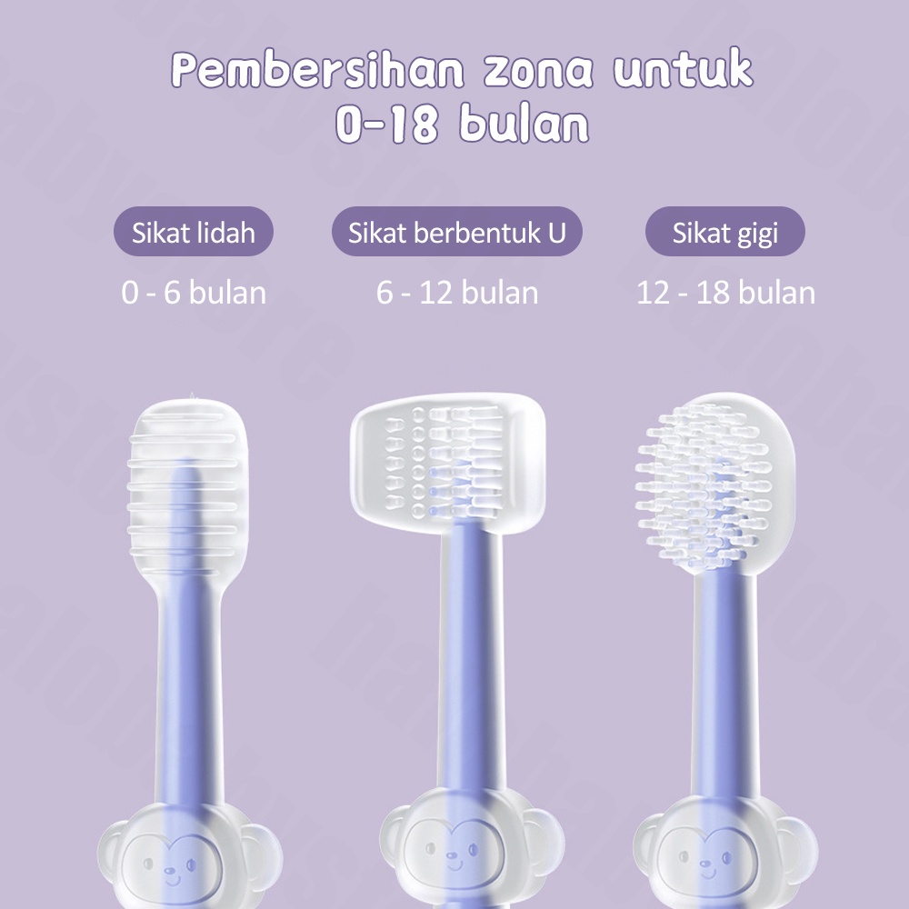 🔵Warna : 🔸Brown 🔸Purple 🔸Green 🔸Blue 🔵Bahan: Silikon 🔵Dimensi: lihat gambar dimensi 🔵Atribut: 🔸Sikat lidah: gunakan setelah lahir 🔸Sikat gigi bayi: gunakan setelah tumbuh gigi 🔵Usia yang berlaku: 0-18 bulan 🔵Metode pembersihan: tahan suhu 180 derajat Celcius, bisa direbus, dikukus, disinfeksi ultraviolet 🔵Produk meliputi: sikat lidah bayi + sikat gigi bayi + kuas berbentuk U+kotak penyimpanan 🔵Kemasan produk: kemasan kantong plastik