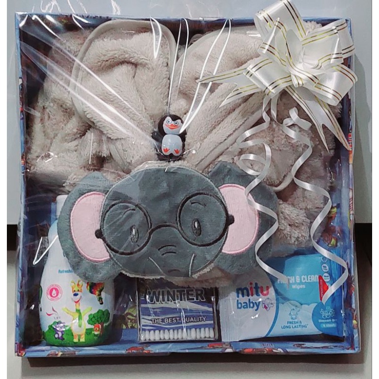 Ibu & Bayi > Set & Paket Hadiah > Hamper Perlengkapan Mandi bayi Handuk Bedak Tissu Basah Cotton buds Hampers Kado Bayi Baru Lahir