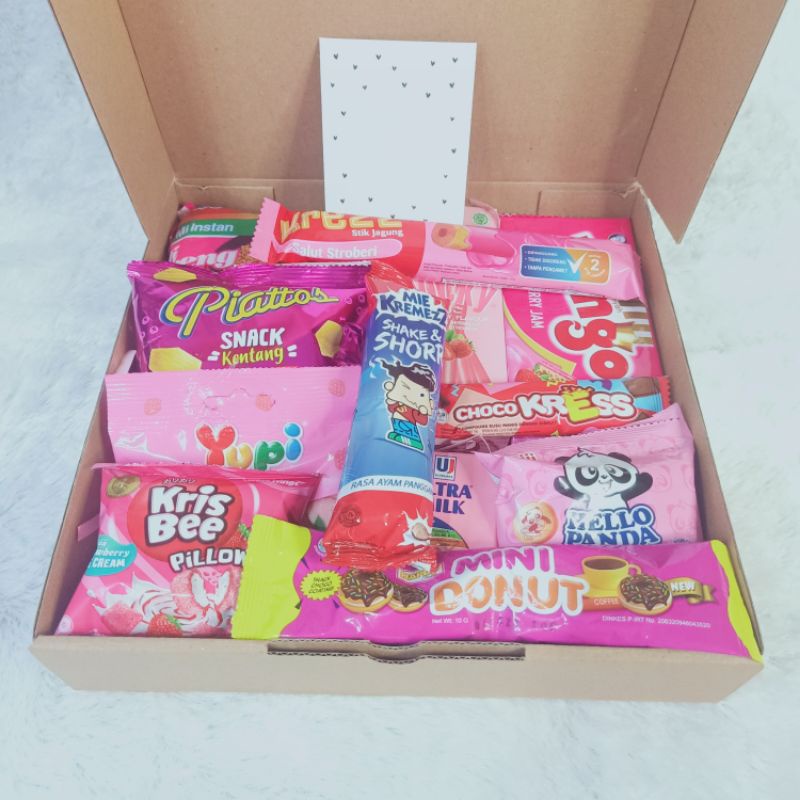 ⭐️Harga sudah Include : -Free Pita - Free packing stereofoam - Free Bubble wrap & lakban fragile pasti aman 🤗🤗 -Kartu Ucapan (⭐️ EXP Snack Masih Lama Jadi Gak Perlu Khawatir saat menkonsumsi)